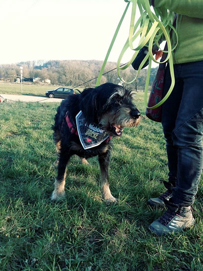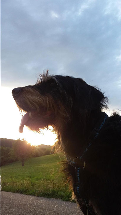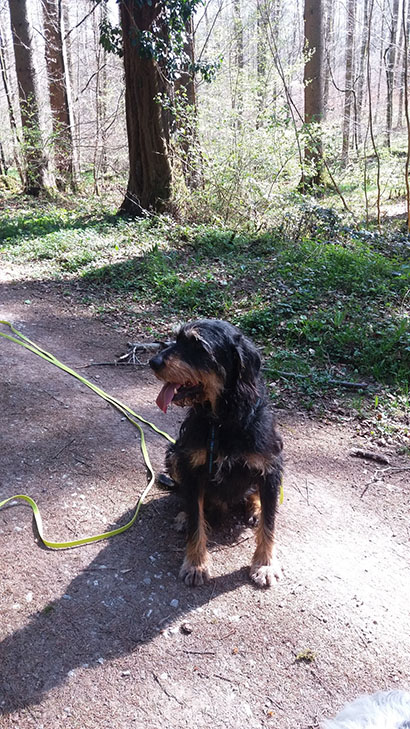 Reglisse ist jetzt seit fast 4 Monaten bei uns. Jeder Tag ist für ihn ein aufregendes Erlebnis, bei dem er dazulernt. Er ist sehr interessiert und aufmerksam. Wen er im Auto mitfährt, sitzt er immer aufrecht und schaut aus dem Fenster. Allmählich kennt er auch schon etliche Hunde aus dem alltäglichen Umfeld und kann ihnen gelassener begegnen. Reglisse ist sehr anhänglich und lieb. Unsere Hündin ist sein Vorbild. Er macht vieles von dem nach was sie tut. Es ist einfach schön. Wir möchten keinen Tag mit ihm missen und sind sehr froh um ihn. Ich möchte mich auch noch bei dem Team und insbesondere Susan bedanken, die immer Zeit und ein offenes Ohr für meine Sorgen und auch meine Freude über Reglisse hatte und mich gut begleitete.