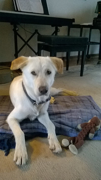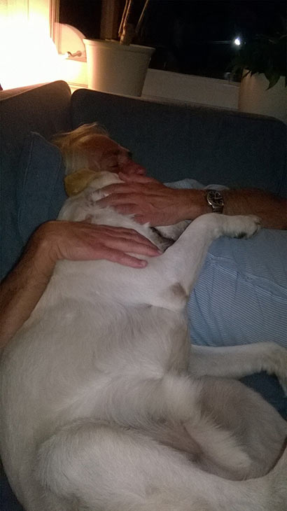 Ich schicke ganz viele Hundeküsse an Susan und bedanke mich bei ihr für die Zeit, die sie mir geschenkt und die Dinge, die sie mir beigebracht hat! Susan, es war gut, dass du die Idee hattest, mich meiner neuen Familie mitzugeben! Ich glaube, sie sehen das auch so: ständig reden sie mit mir, knutschen mich, spielen mit mir und lachen ganz viel.