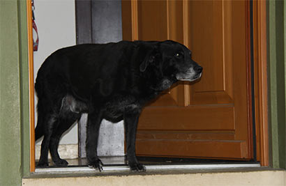 Anbei noch ein aktuelles Bild von ihm. Für uns ist das symbolträchtig. Reyko steht in der Tür und blickt in ein neues Jahr; was wartet da draussen auf uns?