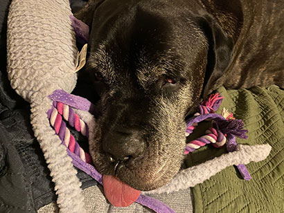 Reyko spürt mit seinen bald 14 Jahren das Alter, aber er ist uns gerade in dieser schweren Zeit ein Sonnenstrahl.