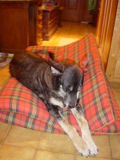 Notre papy de bientôt 12 ans s’est surtout beaucoup reposé, et il dort quasiment toute la journée ! Lui, qui ne refusait jamais sa promenade quotidienne, ne peut malheureusement plus très bien se déplacer à cause de ses problèmes d’arthrose. Il est malgré tout toujours très câlin et pot-de-colle, et nous prenons soin de lui et nous en occupons avec beaucoup d’amour, comme toujours.
