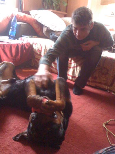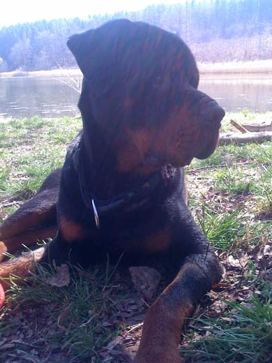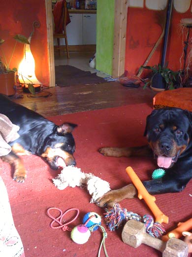 Meine Familie ist mir Mir Umgezogen,ich wohne jetzt in Bermatingen und bewache mit meinem Mädel ein großes Bauernhaus von 300m2 habe ein eigenes Sofa(kuschel aber am liebsten mit Frauchen auf ihrem.. haha)Wir haben mitlerweile soviele Spielsachen das ich nicht mehr darum kämpfen muß. Auch Essen und Knochen haben wir im Überfluß also lass ich sie einfach rumliegen, es ist schon ok, wenn meine Freundin Kira sie frißt ,Frauchen hat immer einen neuen für mich. Ich darf hier auch immer ohne Leine laufen weil ich soooo brav bin sie sagen dazu" lieb sein " das heißt Tieren und Menschen anwedel das bringt sie zum lächeln und siee wollen mit mir spielen(hab für Frauchen sogar" Katzen fressen" aufgegeben,warum sie die Viecher mag weis ich nicht,ist ihr aber wichtig..).
