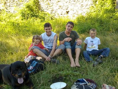 Unsere neuen Nachbarn haben auch welche und Hunde die sind alle ..sehr freundlich zu uns.. .Wir treffen uns hin und wieder beim gassi-gehen.Hier kannst du aber auch Stunden lang laufen auch ohne jemanden zu treffen. Es gibt (1/2h Fußmarsch)ein idyllisches Flüsschen wo wir im Sommer oft hingegangen sind um zum baden, zu spielen,schüffeln und ungestöhrt in der Sonne faulenzen. Ich bin auch gern oben auf dem Berg bei den Schäfchen und schau mit Frauchen über den See zu den großen Bergen hinüber das ist gut für die Seele sagt sie ich vertrau ihr sie ist lieb zu uns Hunden.Bin mir sicher alle sind glücklich und desshalb geht es mir sau gut...