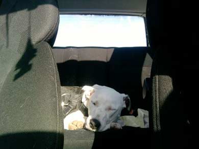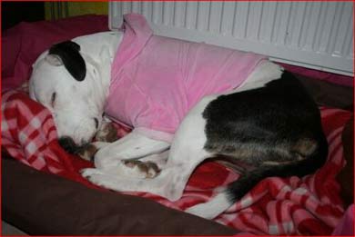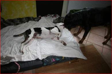 >Als wir nach dem spazieren gehen Rose wieder in ihren Zwinger