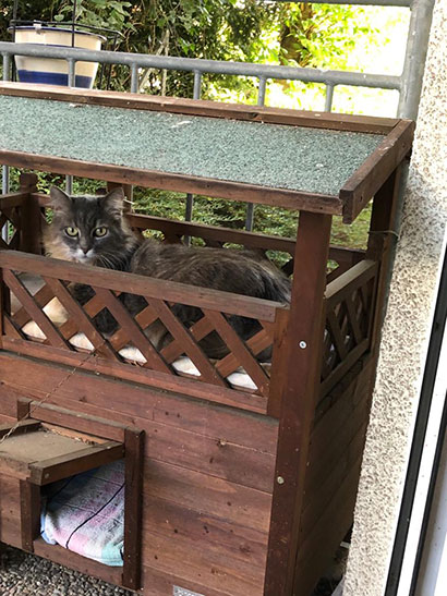 Sie genießt die schönen Tage im Moment gerne auf dem Balkon, sie hat erst kürzlich meinen Sonnensessel für sich entdeckt und heute hab ich zum ersten Mal gesehen dass sie den Freisitz vom Katzenhäuschen nutzt, das hat ihr Vorgänger, der Ruben geliebt , und sie findet es glaub ich auch toll.
