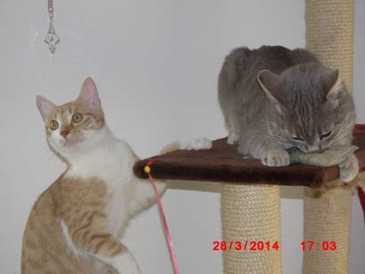 Hallo Heidi, Rouxy hat sich mittlerweile super eingelebt. Er wird von Tag zu Tag frecher. …. Wir haben sehr viel Freude mit ihm. Seit einiger Zeit darf Rouxy bereits nach draußen und genießt es in vollen Zügen. Nachts holen wir ihn allerdings immer rein, da er unserer Meinung nach noch zu klein ist. Das gefällt dem kleinen Kerl aber gar nicht. Mit den beiden anderen Katzen versteht er sich super.