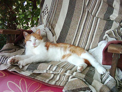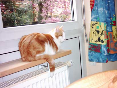 Jetzt bin ich aber wieder ganz fit, habe guten Appetit, mache wie gewohnt meine täglichen Streifzüge in die Nachbargärten und um die Häuser und genieße die Sonne auf unserem herrlichen Balkon (siehe Foto!), wann immer es möglich ist. Mein Frauchen liebe ich über alles, und zu ihr komme immer gerne um Streicheleinheiten abzuholen oder einfach bei ihr zu liegen.