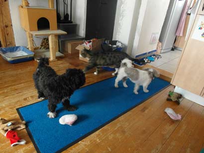 Auch für unsere Katzen war er kein Problem, bereits letzten Sonntag haben sie sich wieder unbefangen in unserem Haus bewegt, so als sei Rustys Anwesenheit ganz normal. Wir freuen uns, dass alles so gut geklappt hat und sind gespannt was wir alles noch zusammen erleben werden.