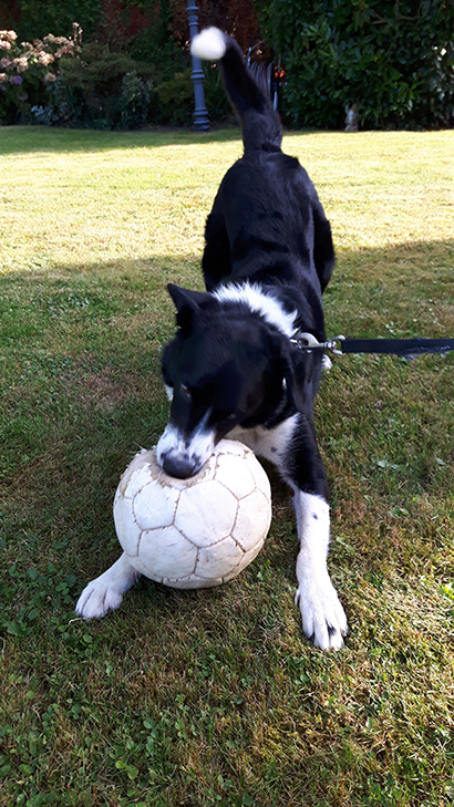 Auch das Alleinebleiben klappt ganz gut. Ich bin momentan viel mit ihm unterwegs, er ist eigentlich immer dabei. Und so muss er auch mal im Auto sitzen bleiben während ich im Einkaufen bin. Das macht ihm mittlerweile nichts mehr aus (er freut sich nur sehr wenn ich wieder zurückkomme). Und auch zu Hause kann er jetzt schon 2 Stunden alleine bleiben. Wenn wir dann wieder zurück ins Haus kommen dann wedelt er wie wild mit dem Schwanz und kann sich vor Freude fast nicht mehr beherrschen. Er ist schon richtig aufgeblüht und wird von Tag zu Tag selbstbewusster. Wir haben die Möglichkeit mehrmals die Woche mit ihm auf ein eingezäumtes Trainingsgelände zu gehen, sodass er dort auch mal ohne Leine rennen kann und wir mit ihm trainieren können (ohne dass er abhaut). Das klappt wirklich schon sehr gut.