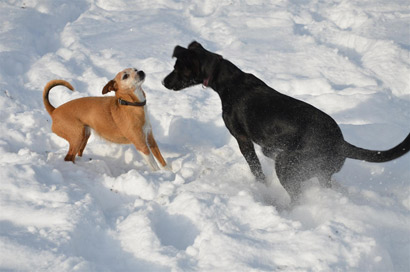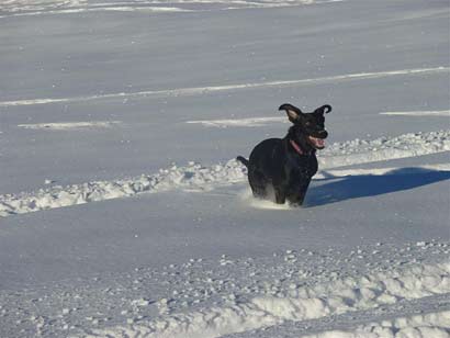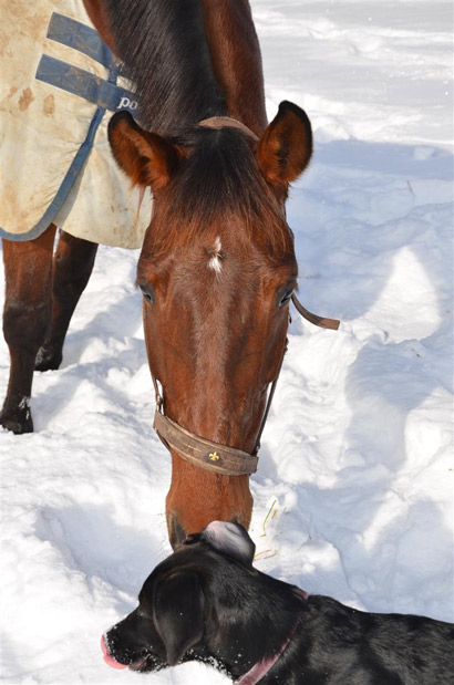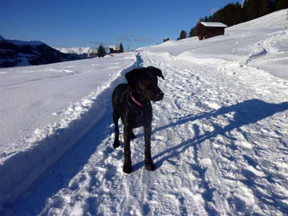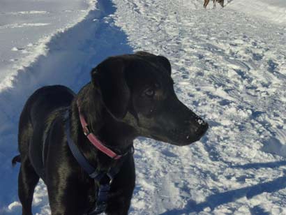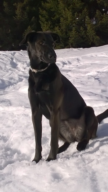 Samira geht es sehr gut. Sie ist fit und fidel und hat den Winter mit dem vielen Schnee sehr genossen. Sie ist ziemlich gewachsen und braucht einiges an Auslauf. Ob da wirklich ein Labi drin ist? ;-) Sie läuft schon neben den Pferden, allerdings braucht das noch etwas Übung. Im Grunde gehorcht sie ziemlich gut, doch der Jagd-Instinkt ist ziemlich ausgeprägt, weshalb im Wald Leinenzwang besteht. Wir hoffen, dass sich das noch legt...