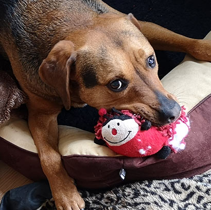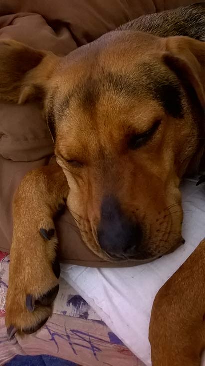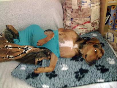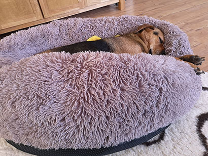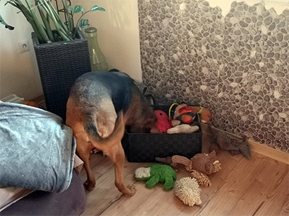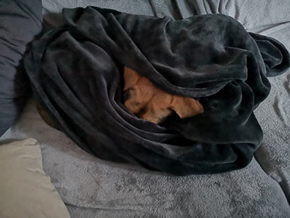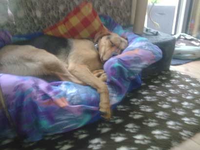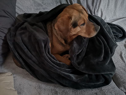 Wenn sie über Tag bei meiner Mutter ist wenn ich Arbeite klappt alles gut, sobald ich ins Spiel komme ist diese abgemeldet. Essen gehen, Decke hinlegen und Hund ist fast unsichtbar. Besser geht es nicht. Leider machen ihre Gelenke und Augen auch nicht mehr so mit, Grauer Star linkes Auge blind, Arthrose in der Hüfte und dem Knie rechts und Sprunggelenk Links, MCD in de Ellenbogen, Spontitis im Lendenwirbelbereich und leichte Bandscheibenvorwölbungen.