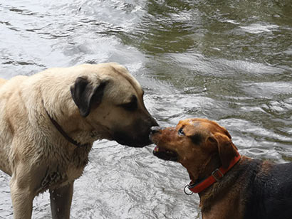 Aber sie währe ja nicht Maja wenn sie nicht einen 75 Kg Kangal Namens Olaf Freundschaft geschlossen hätte und mit ihm wie ein Junger Hund durch die Wälder sprintet.