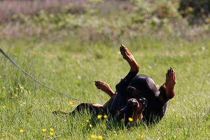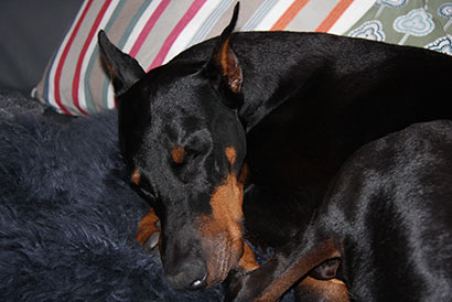 Wie man sieht, fühlt sich auch unsere wunderschöne Dobermannhündin pudelwohl in ihrem Zuhause :)