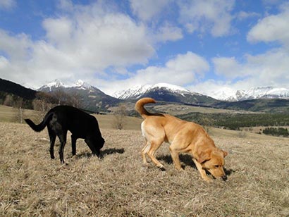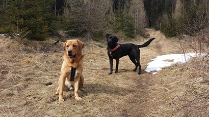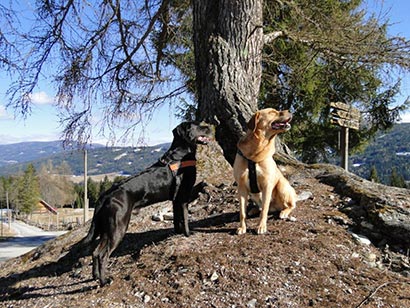 Hallo Sandra, Lou und Freddie waren zusammen im Österreich-Urlaub und tobten gemeinsam bei langen Spaziergängern über die teils noch schneebedeckten Wiesen, badeten in eiskalten Bächen und sogen begierig all die vielen neuen Eindrücke und fremden Gerüche in sich auf.