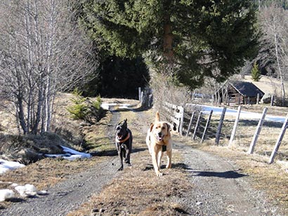 Meine Mutter und ich wechselten uns täglich mit Hundesitting ab, während die jeweils andere mit dem Rest der Familie auf der Skipiste war, was mir einige wunderschöne Wanderungen bescherte.