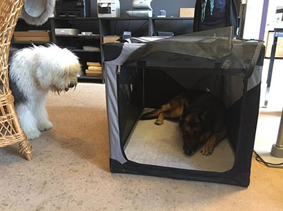 Am Dienstag gehen wir zum ersten mal zur Hundeschule. Ich habe dort angekündigt, dass Smokie an der Leine aggressiv auf anderen Hunde reagiert. Menschen gegenüber ist er sehr freundlich und ein richtiger Schatz. Wenn ich weiss, dass Leute, die uns im Geschäft besuchen gut mit Hunden umgehen können, lasse ich ihn immer frei laufen. Er benimmt sich dabei immer ganz toll.