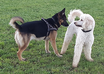 In der Hundeschule machen wir beide Fortschritte. Und selbst wenn Smokie ab jetzt nichts mehr dazulernen würde wäre ich vollauf zufrieden. Er wird aber n! och sehr viel lernen, da er fürchterlich neugierig ist und seinen Kopf überall reinstecken muss.