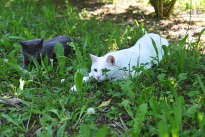 Inzwischen gehen wir mit dem Katzen sogar fast täglich gemeinsam raus. Sie sind so anhänglich, dass man mit ihnen in die ganz nah liegenden Felder und Streuobstwiesen spazieren gehen kann. Sie finden die gemeinsamen Ausflüge ganz toll, sie laufen auch schon maunzend zur Haustür um uns zum Spaziergang aufzufordern. Die beiden sind einfach fantastisch!