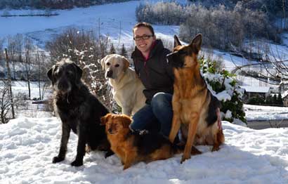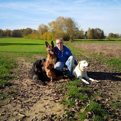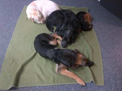 Da Sam und Barley aber wirklich gut "funktionieren", und Speed und Jackson sehr schnell lernen, klappt (bislang) alles wirklich reibungslos. Dass sich das ändern kann, wenn die Kleinen älter und stärker werden, ist mir bewusst. Nachdem aber die Erziehung bei den Großen gefruchtet hat, bin ich zuversichtlich, dass wir auch die Zwerge gut hinbekommen. Das ist dann schon einmal die halbe Miete ... Mit allem Anderen beschäftige ich mich, wenn es soweit ist. Bis dahin laufe ich auf jeden Fall mit einem breiten Grinsen auf dem Gesicht durch die Landschaft, weil ich vier so schlaue, hübschen Kerle um mich herum haben darf. Mein Mann - der Arme wollte eigentlich gar keinen Hund - gibt sie auch nicht mehr her. Den vier Hunden beim Spielen, Raufen, Blödsinn-Machen und Schlafen zusehen zu können ist für uns einfach ein super Ausgleich. Ein Stück Lebensqualität, von der wir in den vergangenen 5 Jahren leider nicht allzu viel hatten.