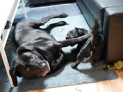 Hallöchen nach Südbaden! Lia geht es blendend und sie hat inzwischen auch schon einige Hundefreunde gefunden,mit denen sie rennt und tobt. Vor einer Weile hatten wir einen Meilenstein: Lia hat zum ersten Mal von sich selbst aus ihren Kopf längere Zeit auf mich gelegt, und ist dann da auch richtig eingeschlafen.
