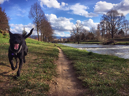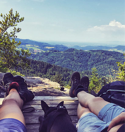 Als kleine Sportskannone gehen wir gemeinsam wandern, joggen und sogar kleine Mountainbike Touren läuft er mit. In ihm schlägt ein Abenteurerherz!