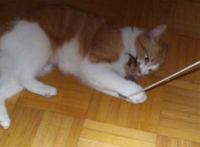 Warum ich nicht auf den Tisch soll, verstehe ich nicht so recht. Da hat man so schön den Überblick … aber das mache ich auch schon nicht mehr so oft. Wenn halt die Spielmaus an ihrem Gummifaden da hochspringt, kann ich nix dafür, da muss ich schon noch hinter her, dann schnapp ich sie aber ganz schnell und schon sind wir wieder weg.