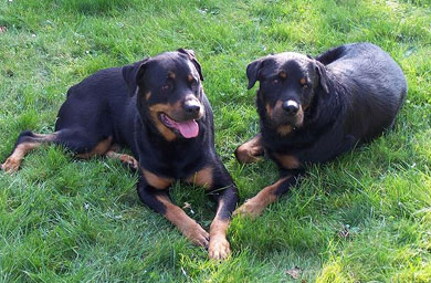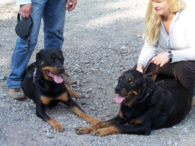 Zwei glückliche Rottis und deren Besitzer bedanken sich