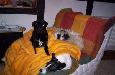 Frauchen bleibt mit mir noch im Bett und wir schmusen noch