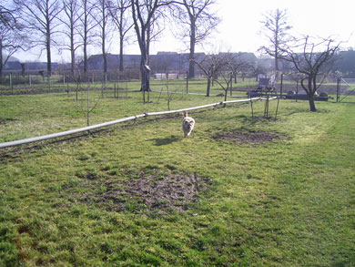 Garten, der eingezäunt ist, laufe ich frei herum.