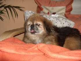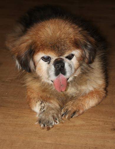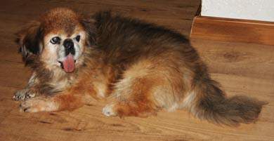 Pekinesenrüden aufmerksam machte. Sein Alter? 15 Jahre