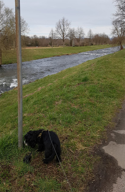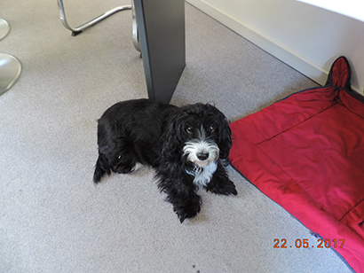 Hallo Frau Herr, hier mal wieder ein Foto vom liebsten Hund der Welt. Sie ist immer dabei.
