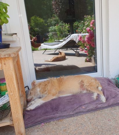 Wir machen täglich lange Spaziergänge. Andere Hunde sind kein Problem.