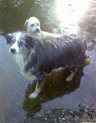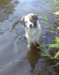 Marie liebt Wasser abgöttisch,wenn wir mit unserem Rudel