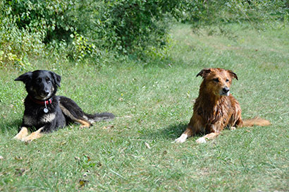 Jazz und Lola, die beiden Hündinnen (beide aus dem Tierheim Ebersheim/ehemals Liepvre) genossen einen tollen Spaziergang zusammen.