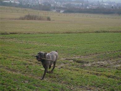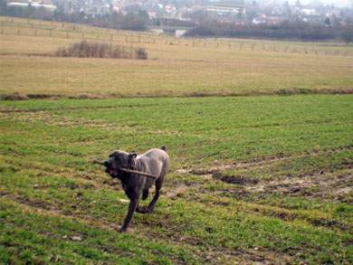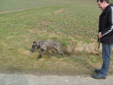 und hört auch schon gut. Beim Gassigehen darf er frei laufen