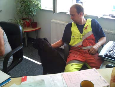 Ulyss ist von morgens bis abends im Büro mit dabei. Kommt