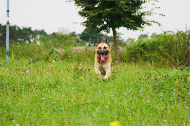 ohne Leine zu laufen und plustert sich immer noch auf, wenn