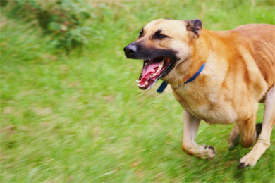 das er losbellt, doch sobald er die Chance hat ihnen nach zu