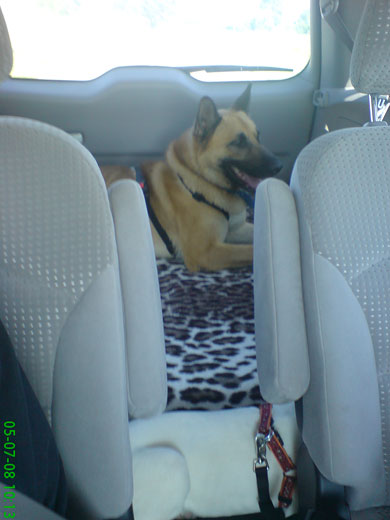 der fahrt hin. Er bellt nicht wenn andere Hunde zu sehen sind