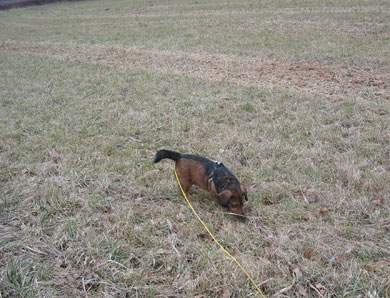 Reizen wegen Schnüffeln nach Bisamratten usw. hinterhergedackelt,