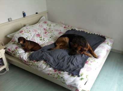 Hallo Frau Herr, Ich sende ihnen einige Fotos von Uria, den wir seit Oktober haben. Am Anfang war es schwierig weil er aggressiv war, aber dann haben wir ihn kastrieren lassen und mit der Zeit hat er auch verstanden dass er's bei uns schön hat. Seit dem geht es besser, machmal aber spinnt er trotzdem noch ein wenig... Jetzt schläft er sogar jede Nacht mit uns auf dem Bett. Ab und zu haben wir auch Tina dabei (den Schäferhund!!!) vieleicht sollten wir ein grösser Bett kaufen!!!!!!! Und noch ein paar Katzen dazu nehmen!!!!! Cordialement Christiane und Denis