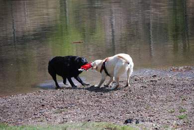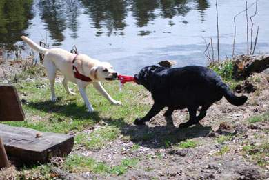 Wasser zu springen oder ihr heissgeliebtes Spielzeug zu suchen,