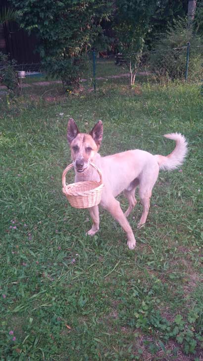 Liebe Michaela, der Tino kann leider nicht zum Sommerfest kommen. Er ist mit dem Körbchen auf dem Weg zur Großmutter. Im letzten Jahr hat er die Begleithundeprüfung abgelegt. Auch sonst hat er alle we- sentlichen Ausbildungsziele erreicht. Jetzt arbeiten wir nur noch an der Kür.