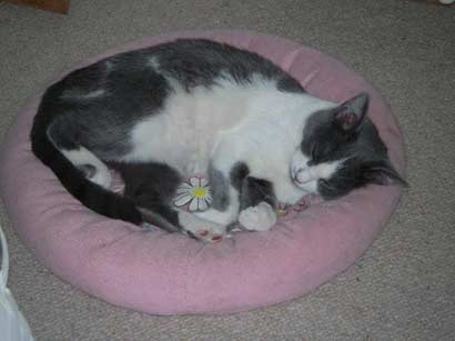 Tagsüber spielt sie mit ihren Katzenkollegen, wo sie manchmal schon ziemlich theatralisch "aufschreien" kann. Aber unsere vierbeinige Truppe harmoniert wunderbar und es ist schön, wenn die Tiere miteinander spielen und sich verstehen.