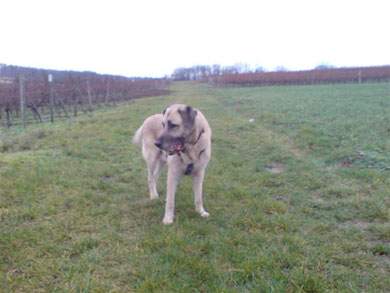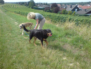 Am Sonntag durfte er gleich eine tolle Runde Gassi in den Weinbergen