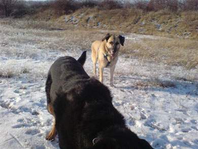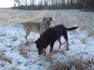 tut er was man von ihm will. Freya und Voyou, zwei Hunde wie