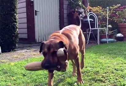 Ich lebe hier mit meinen Zweibeinern in einem Haus mit Garten, in dem ich, wenn ich möchte, den ganzen Tag toben kann. Wenn mein Frauchen arbeiten muss, passt Frauchens Mama auf mich auf.