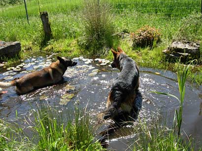 Whisky ist ein super Hund mit so viele positiven Eigenschaften, denn er versteht sich mit allen andern Hunden gut, egal ob Rüden oder Hündinnen. Bei schönen Wetter genießt er es im Garten auf der Wiese oder im Eingangsbereich zu liegen und auf einem Foto sieht man ihn mit seinem Schäferkumpel bei uns im Garten spielen.