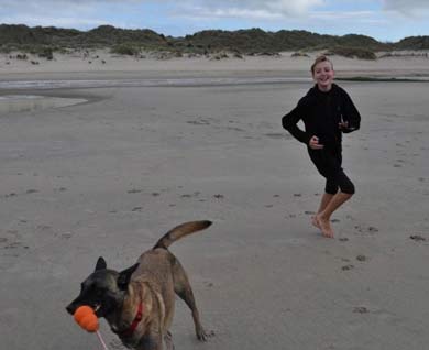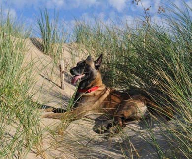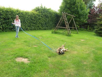 Auf den beiden Fotos bekommen Sie vielleicht einen kleinen Eindruck, wie entspannt und selbstbewusst unser Mali inzwischen geworden ist - und unsere Tochter war sehr begeistert, dass er neulich einen "fremden" Hund, der ihren im Freigehege hoppelnden Kaninchen zu nahe kam, weg getrieben hat - die gehören eben auch "zur Familie" und werden von ihm beschützt!