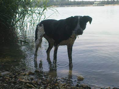 wollte euch ein paar erheiternde Sommerbilder zukommen lassen. Ja, dieses Jahr war sehr ereignisreich bis jetzt. Habe ich doch Rudelzuwachs bekommen von 2 chaotischen Jungs. Mit denen verstehe ich mich aber gut, wir zocken den halben Tag. Ich habe vor kurzem etwas absolut unwiderstehlich leckeres gefunden, direkt bei der Hofeinfahrt. Eigentlich weiß ich genau, dass ich nichts was auf dem Boden herumliegt fressen darf.. naja, es war so verdammt lecker. Leider war Fraule gar nicht davon begeistert und ich sollte mit zum Tierarzt..?? Dort musste ich mich auf einmal übergeben. Alle haben mich gestreichelt und ich bakam viele Spritzen und so eine komische Flasche hing an meinem Bein. Mein Fraule war ganz besorgt, ich habe gehört, dass ich Gift gefressen habe. Nach ein paar Tagen hieß es , ich sei über den Berg. Zum Glück gings mir dann wieder besser. Also bis bald, euer Zens